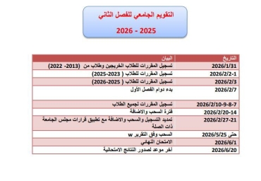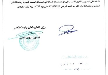 جامعة قاسيون الخاصة للعلوم والتكنولوجيا تصدر التقويم الجامعي للفصل الثاني للعام الدراسي...