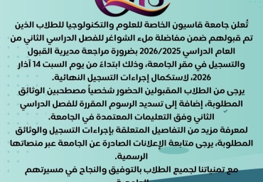 إعلان مهم من جامعة قاسيون الخاصة للعلوم والتكنولوجيا