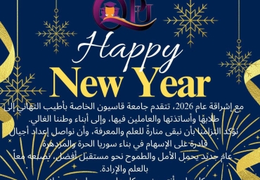 مع إشراقة عام 2026، تتقدم جامعة قاسيون الخاصة بأطيب التهاني إلى طلابها وأساتذتها والعاملين فيها، وإلى أبناء وطننا...